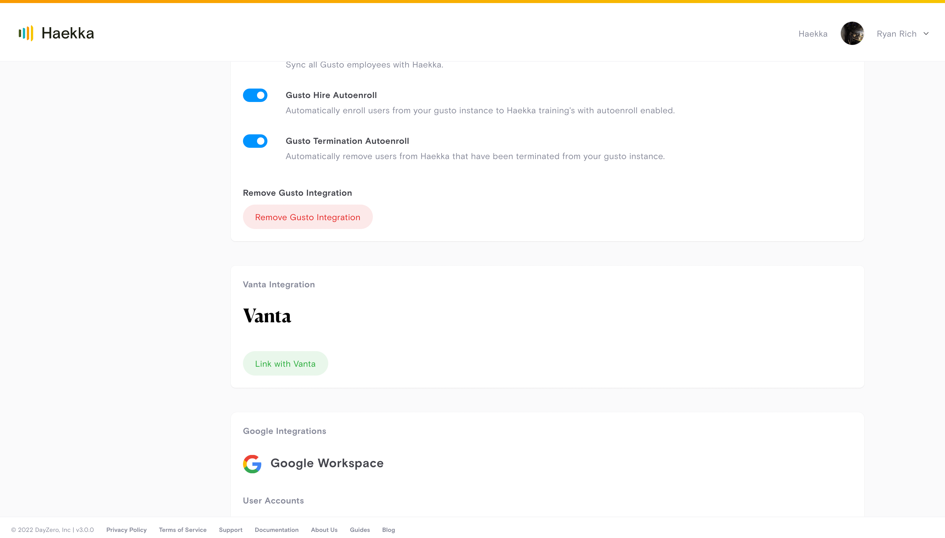 In this release we have a new integration that allows Vanta customers to have their security training evidence automatically uploaded to their account. This process will run automatically on new and existing trainings tagged with Security information by Haekka. With this integration customers can save time and effort by having training evidence populated automatically.